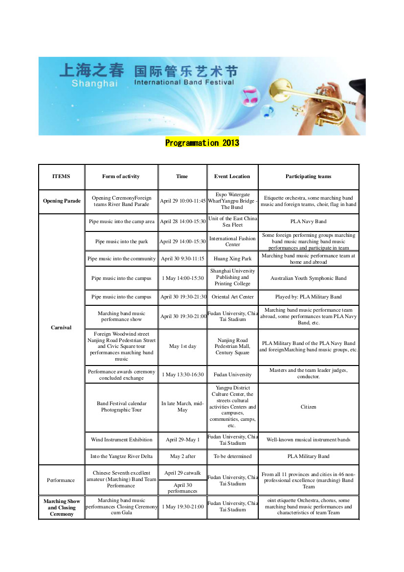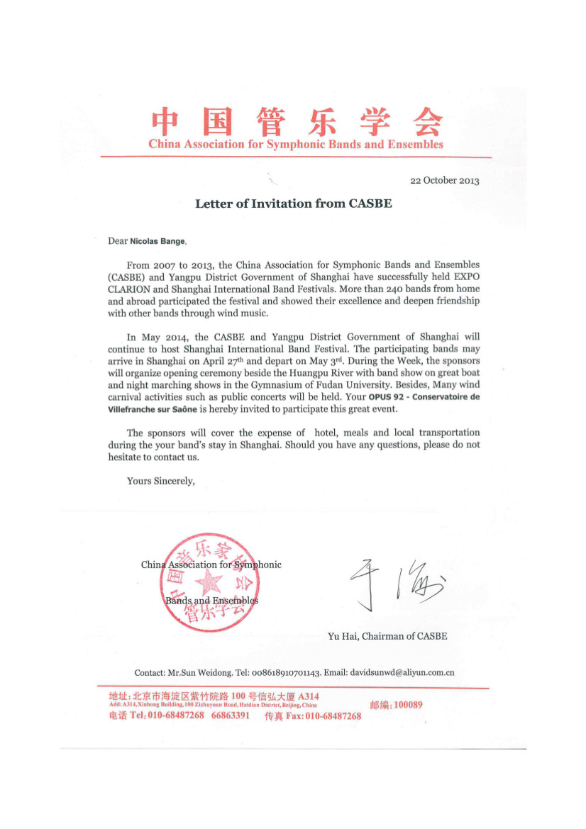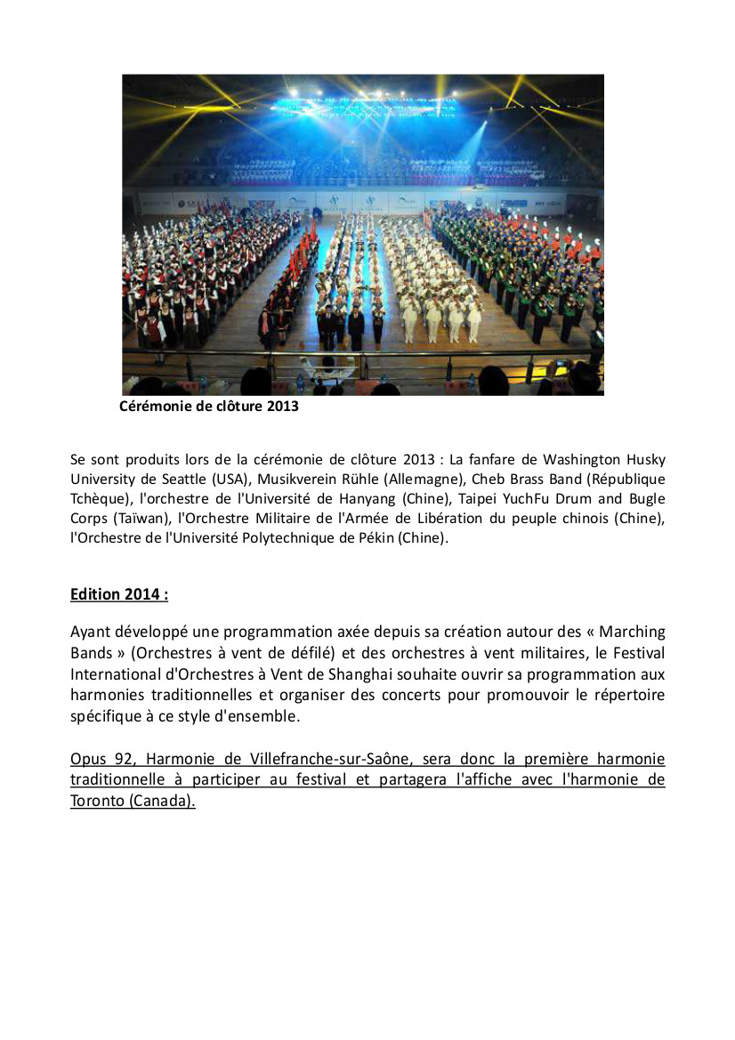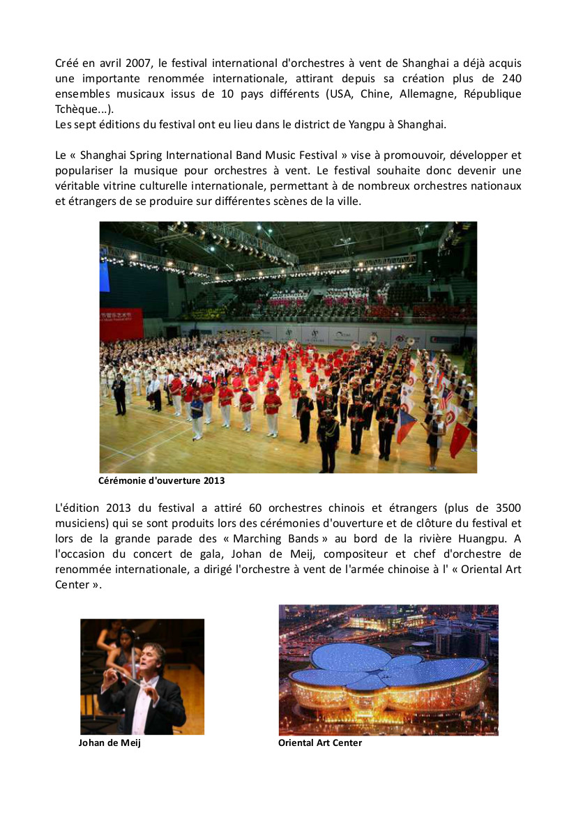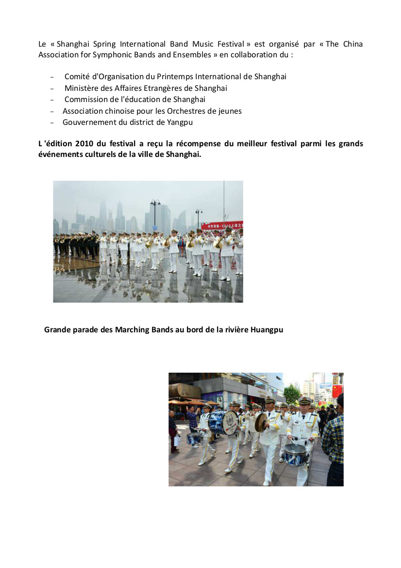 Invitation au Festival International d'orchestres à vents de SHANGHAI (Chine) Soutenir le projet Télécharger ce document Télécharger ce document